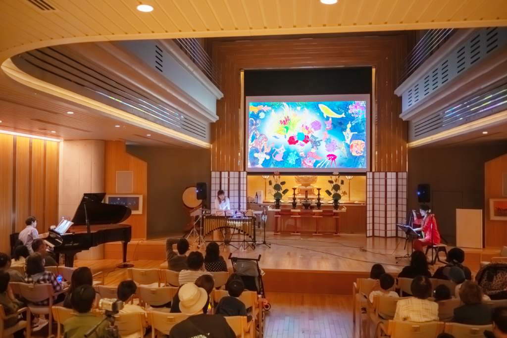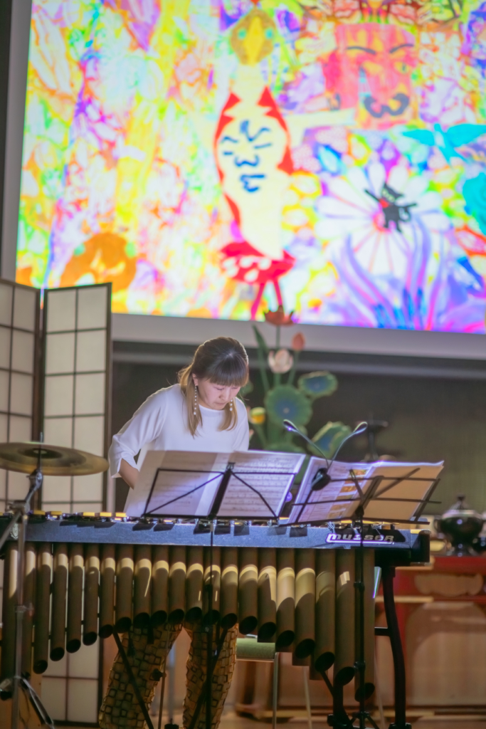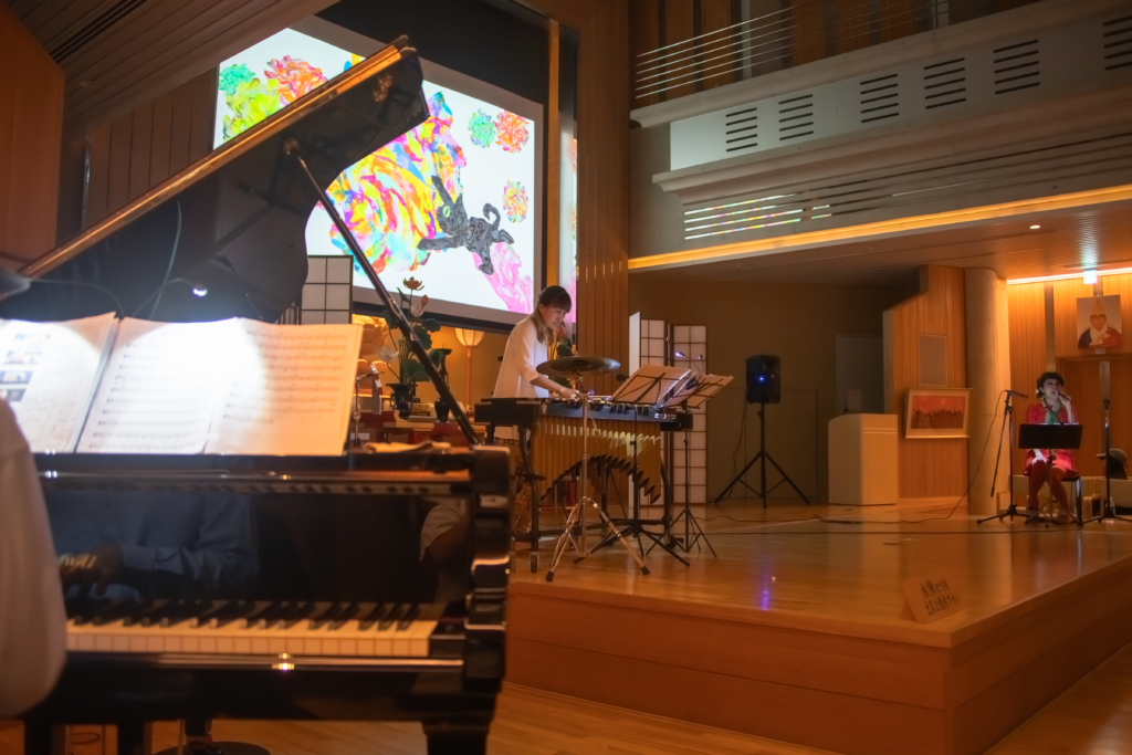 ピアノ、朗読、ビブラフォンという珍しい編成でしたが、空間に美しく広がり響き渡る音が見事に調和していました。