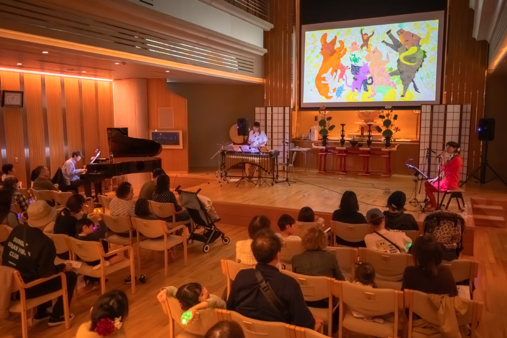 お子さんと大人の方も楽しんでもらおうと、本格的なジャズの演奏と可愛い絵本のお話し、そして光マラカスもつくって一緒に演奏にも参加してもらいました。