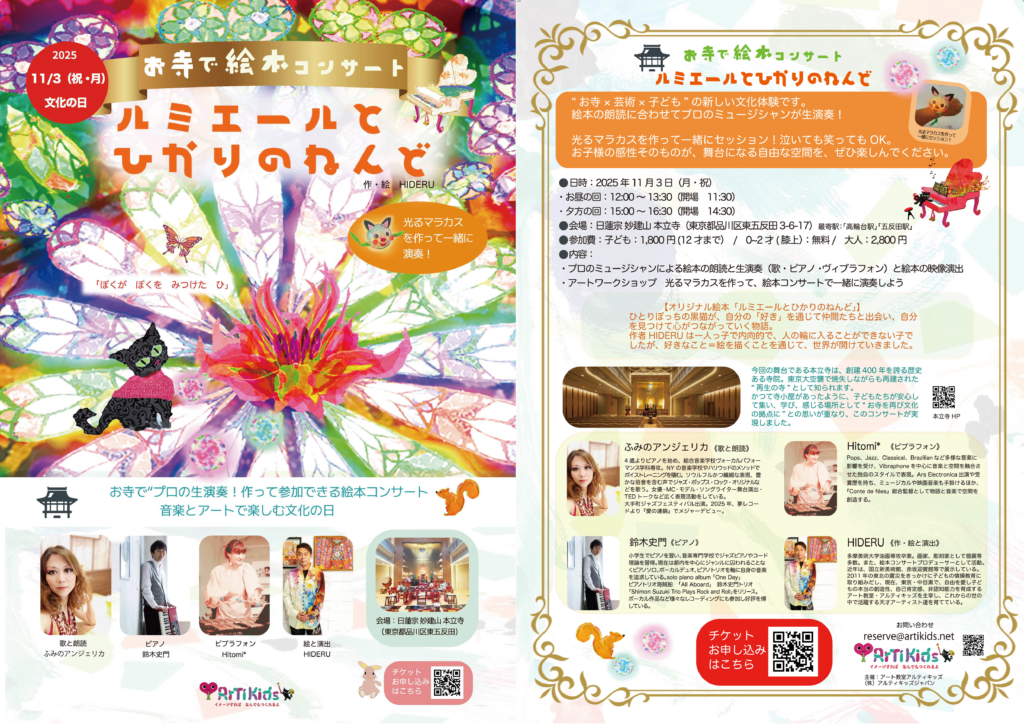 11月3日の文化の日に目黒区のお寺「本立寺」で絵本の読み聞かせコンサート