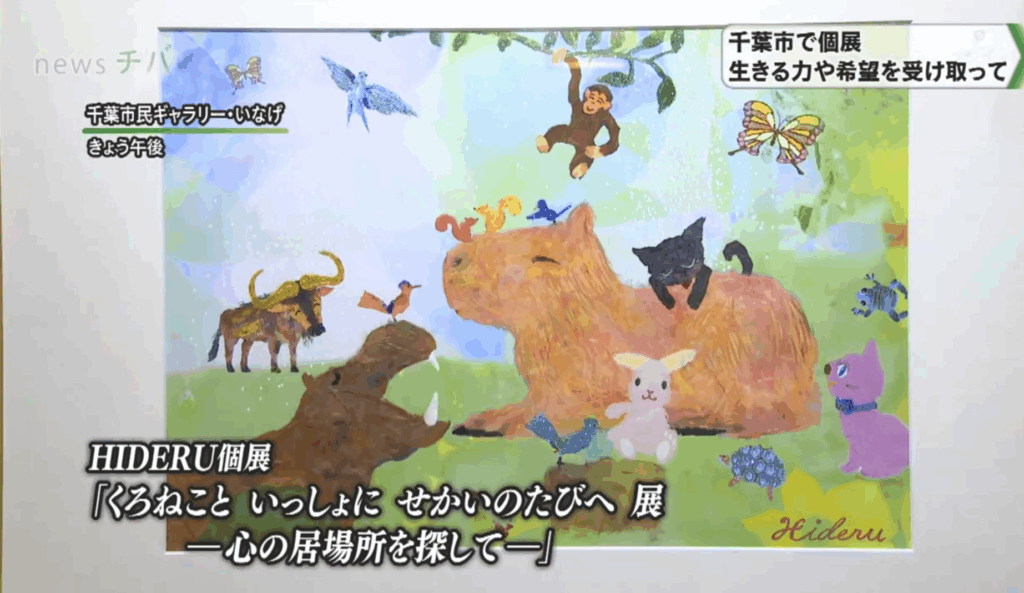 千葉テレビで紹介されました。主宰HIDERU個展「心の居場所をさがして」25/11/24